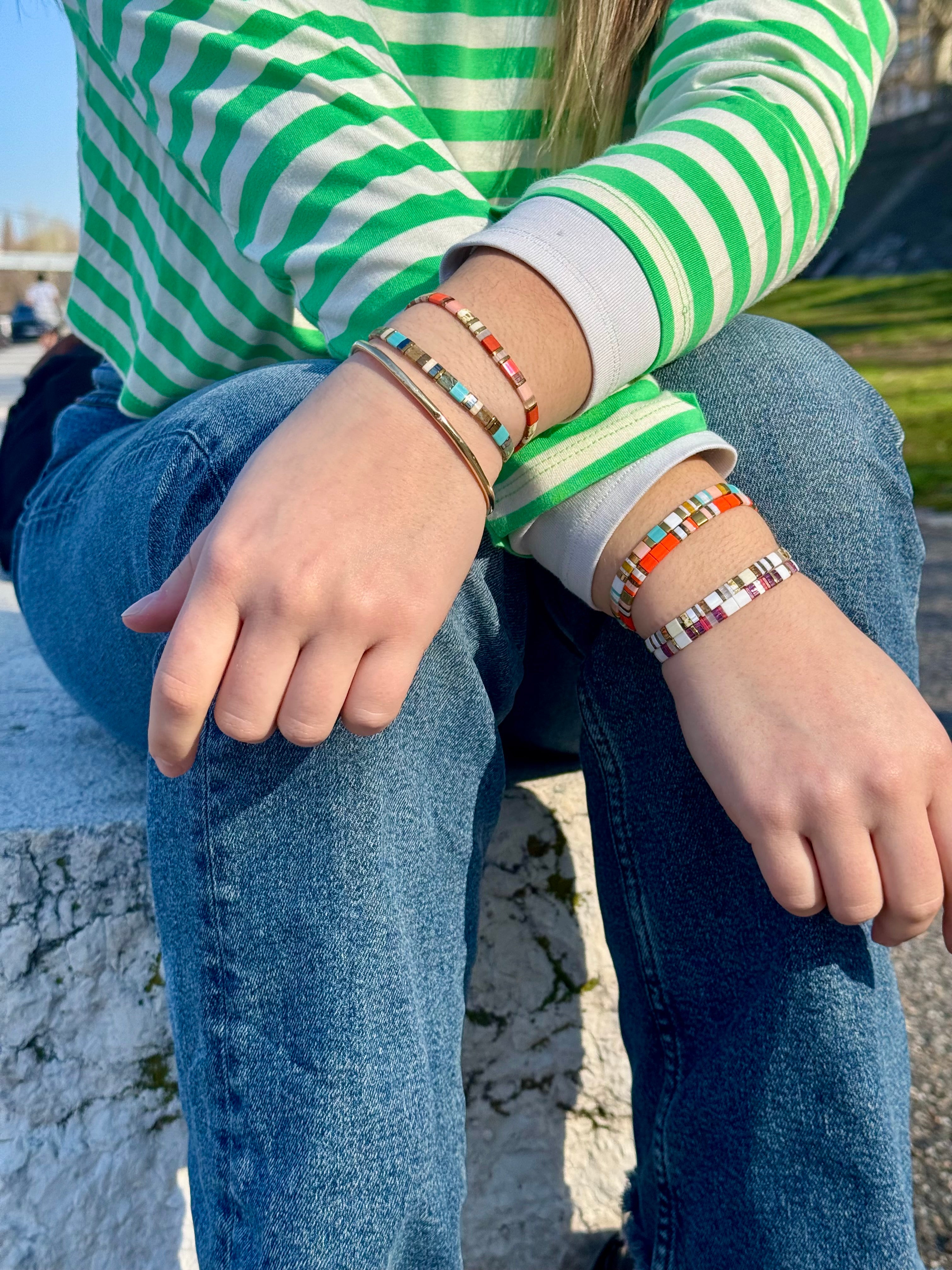 Pour ces ateliers, nous vous proposons de créer un bracelet en perles Tila !