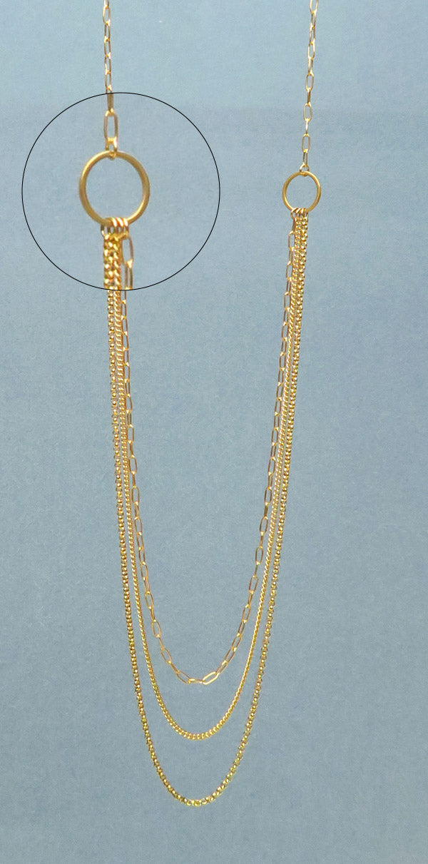 Vous pouvez aussi choisir de rassembler vos chaînes sur un anneau fermé, c’est ce que l’on a fait pour ce collier.