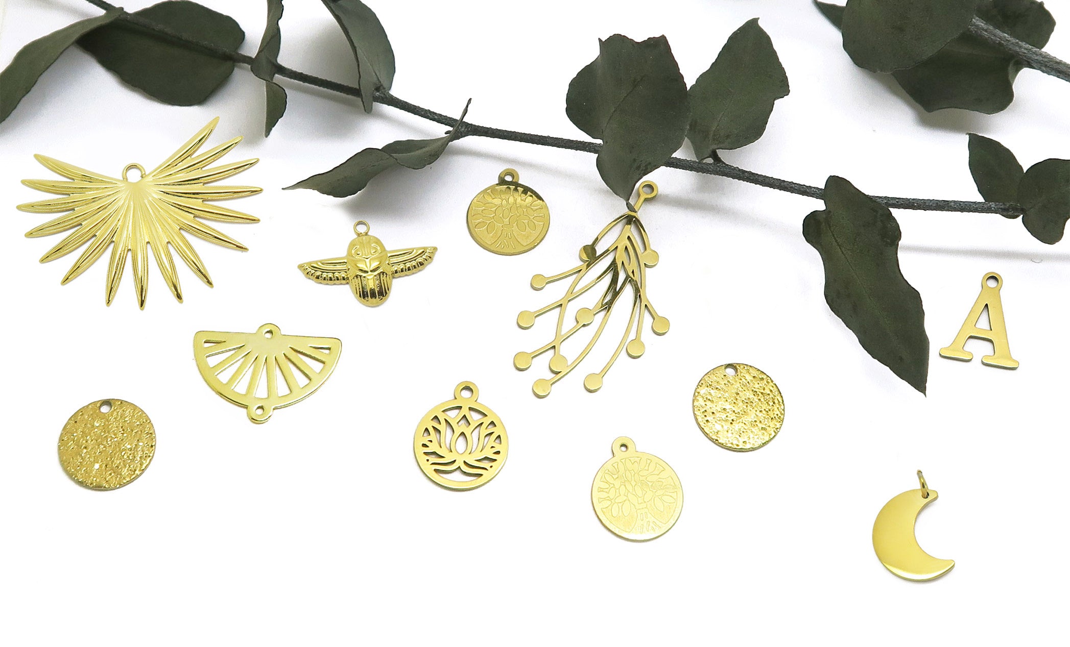 Attention, la tranche des perles n'est pas teintée doré. Elle est de couleur brut, gris anthracite. Cela n'est pas visible lorsque la perle est utilisée comme perle intercalaire.