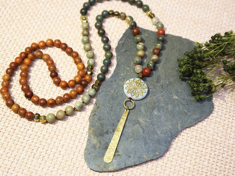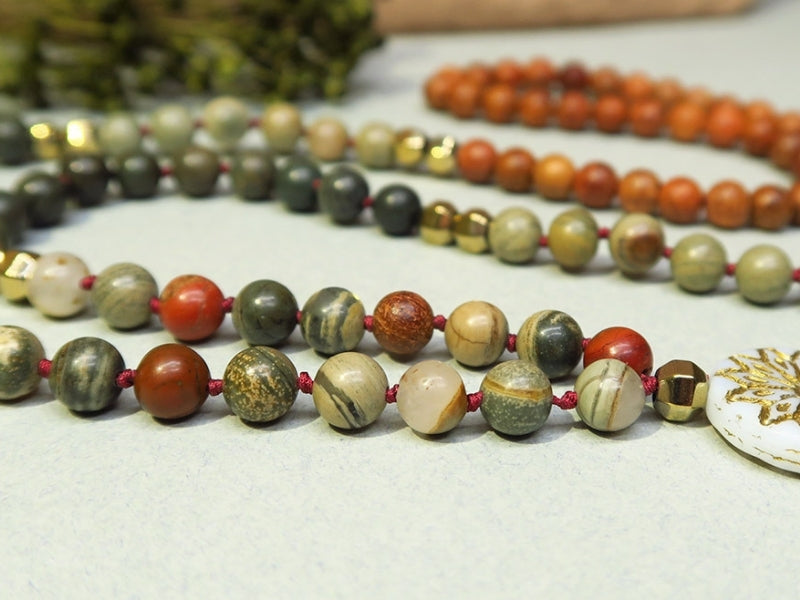 Vous aimez notre Mala ? Retrouvez les pièces nécessaires dans notre DIY sautoir Mala en Jaspe pour le créer à votre tour !